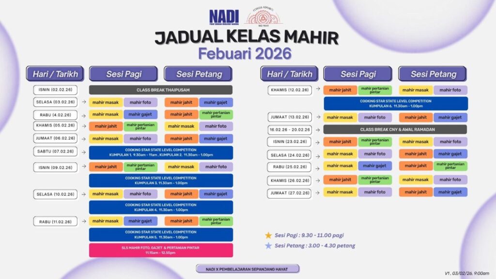 Utama > Jadual Aktiviti > JADUAL KELAS MAHIR FEB 2026 Sebarang perubahan akan dimaklumkan dari semasa ke semasa.